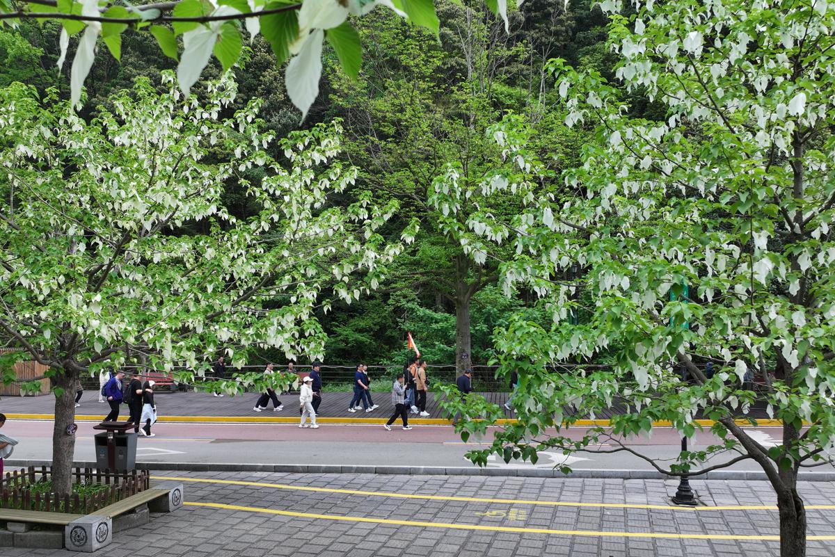 Rare dove tree flowers, often dubbed the "panda of the plant kingdom", recently graces Zhangjiajie National Forest Park in Hunan province with their beauty. [Photo by Wu Yongbing / for chinadaily.com.cn]