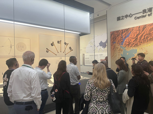 Attendees to the Third UNESCO High-Level Forum for Museums, held from Wednesday to Friday in Hangzhou, Zhejiang province, visit the Archaeological Ruins of Liangzhu City and the Liangzhu Museum. [Photo by Lin Qi / China Daily]