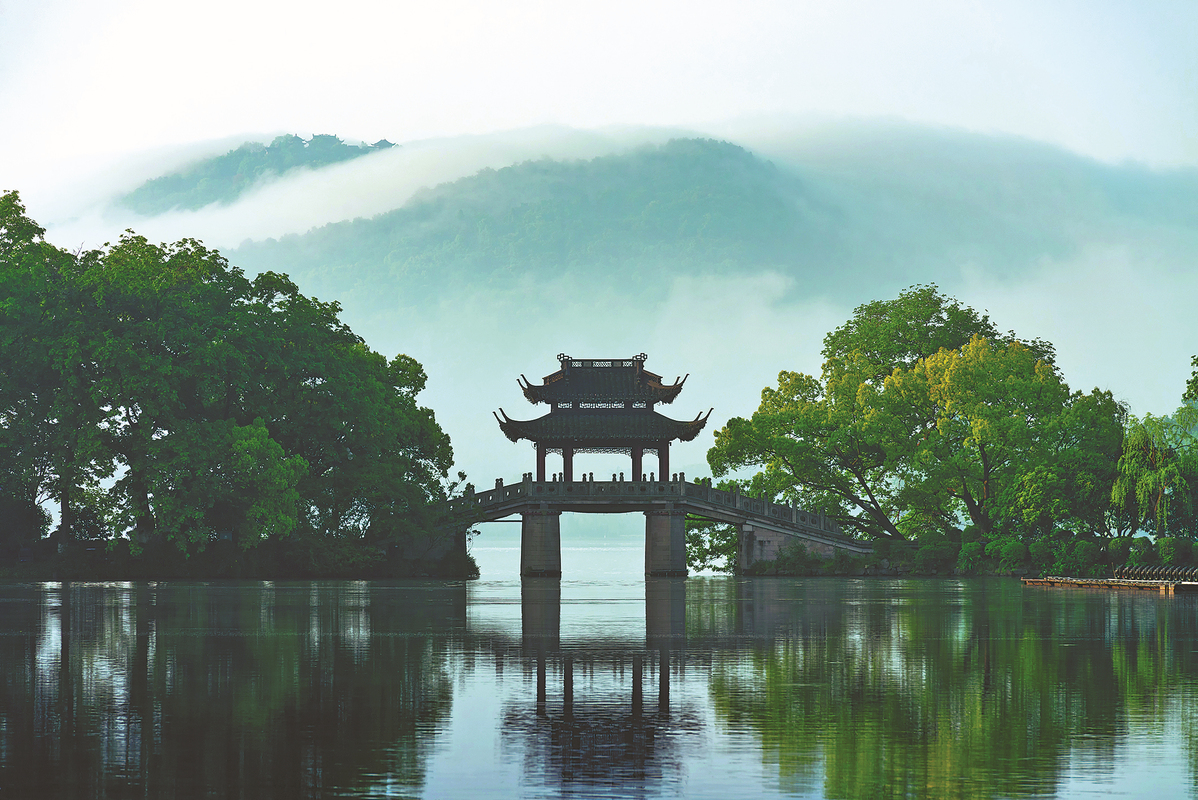 The great Song Dynasty poet Su Shi was appointed head of Hangzhou twice. During his second term in office, to resolve the environmental crisis the West Lake was then facing, he had the lake dredged and enlarged, built the nearly 3-kilometer-long Su Causeway using silt from the lake bed, connected the causeway with six single-arch stone bridges, and planted peach and willow along its length. This project from more than 1,000 years ago created the three famous West Lake views that are still appreciated today — Dawn on the Su Causeway in Spring, Three Pools Mirroring the Moon, and Misty Willows on the Six Bridges. A cultural landmark of what is today Hangzhou, the Su Causeway epitomizes a combination of water conservancy engineering, environmental treatment and landscaping.