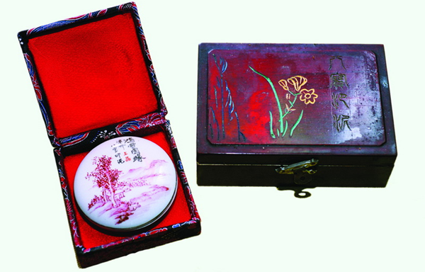 The Eight-Treasure Inkpad has a bright and eye-catching vermilion color. It is delicate and rich, with a pleasant fragrance. The imprints are clear and never fade. In addition, there is an antique-style inkpad and colorful seal pastes in black, blue, and green.