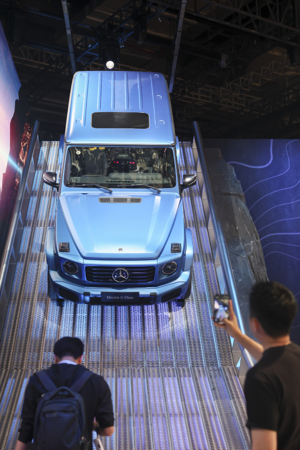 A visitor takes photos of a Mercedes-Benz vehicle during the 21st Shanghai International Automobile Industry Exhibition in East China's Shanghai, April 23, 2025. [Photo/Xinhua]