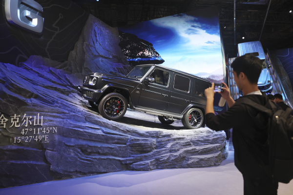 A visitor takes photos of an off-road vehicle on display during the 21st Shanghai International Automobile Industry Exhibition in East China's Shanghai, April 23, 2025. [Photo/Xinhua]