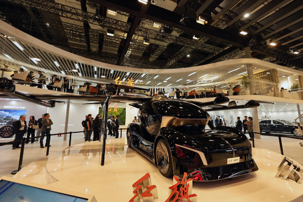 A Hongqi flying car is exhibited during the 21st Shanghai International Automobile Industry Exhibition in East China's Shanghai, April 23, 2025. [Photo/Xinhua]