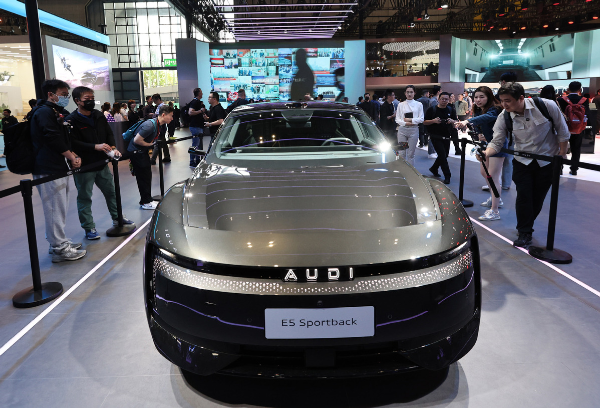 Visitors look at an Audi E5 Sportback during the 21st Shanghai International Automobile Industry Exhibition in East China's Shanghai, April 23, 2025. [Photo/Xinhua]