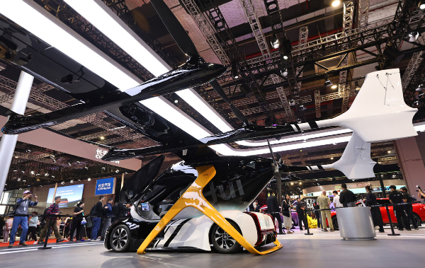 A Chery flying car is exhibited during the 21st Shanghai International Automobile Industry Exhibition in East China's Shanghai, April 23, 2025. [Photo/Xinhua]