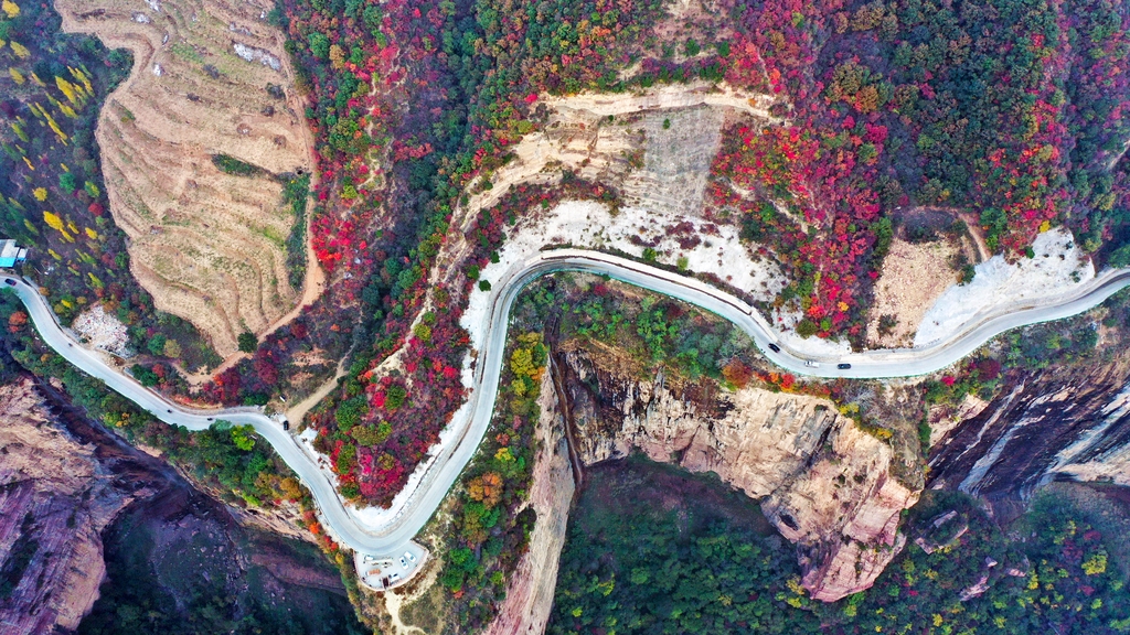 An aerial autumnal view of the Baoquan Tourist Area, Henan province [Photo/IC]