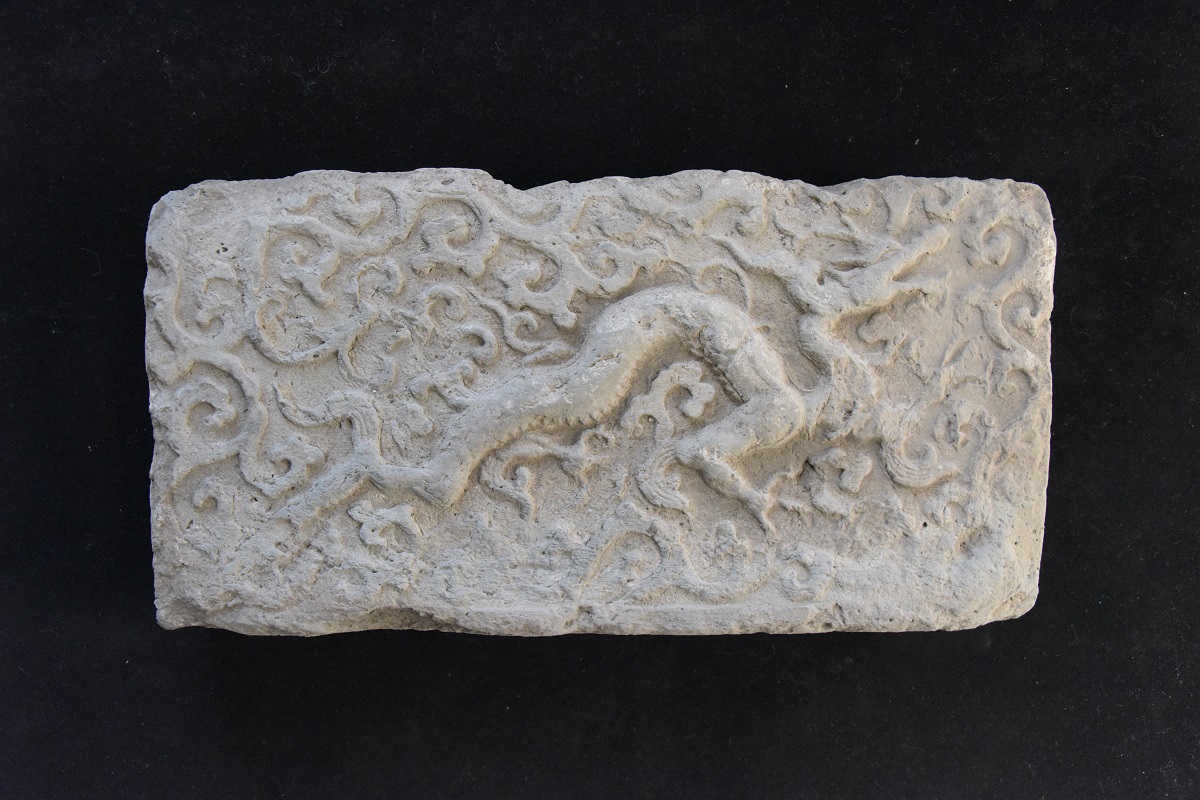 Brick with dragon motifs discovered at Jinshangjing capital site [Photo/provided to chinaservicesinfo.com]