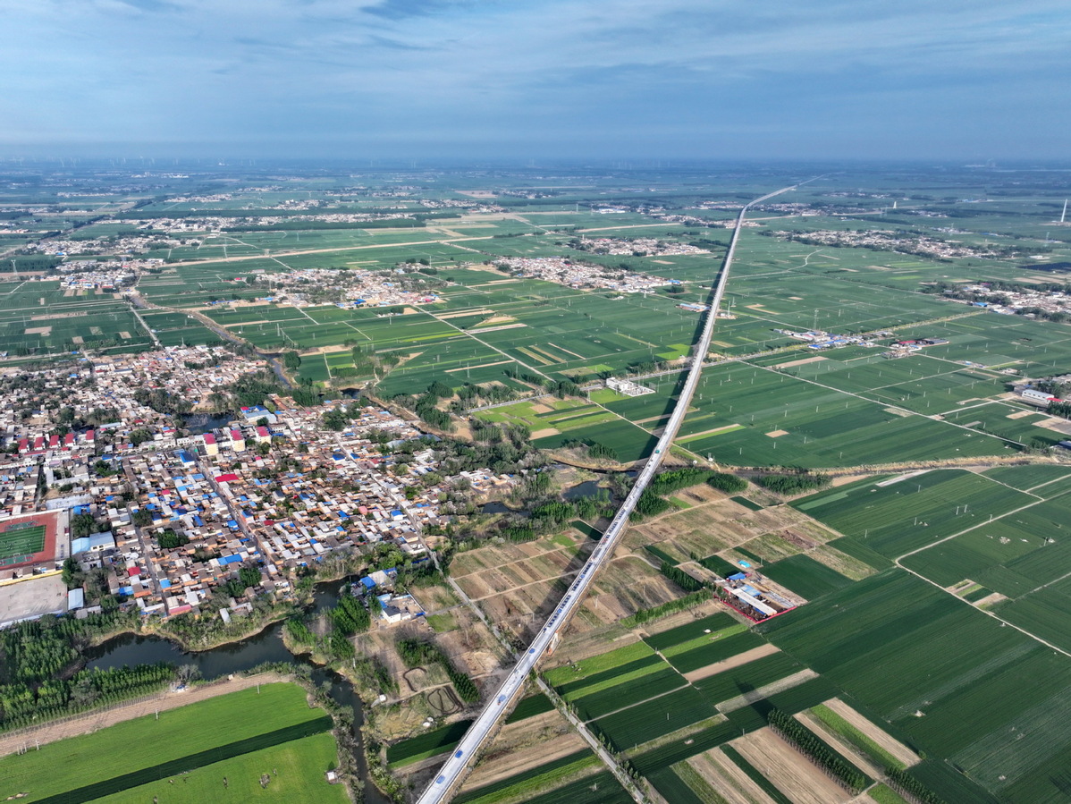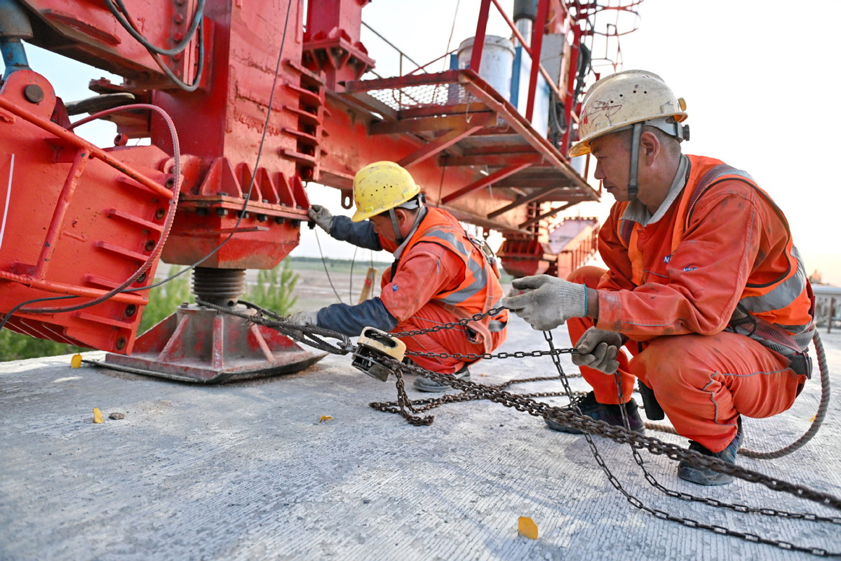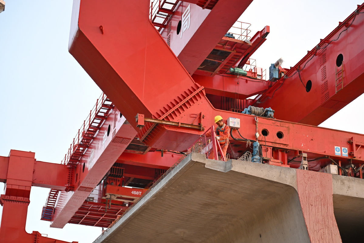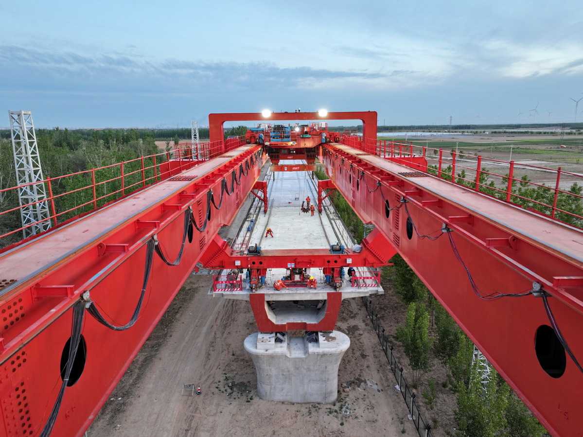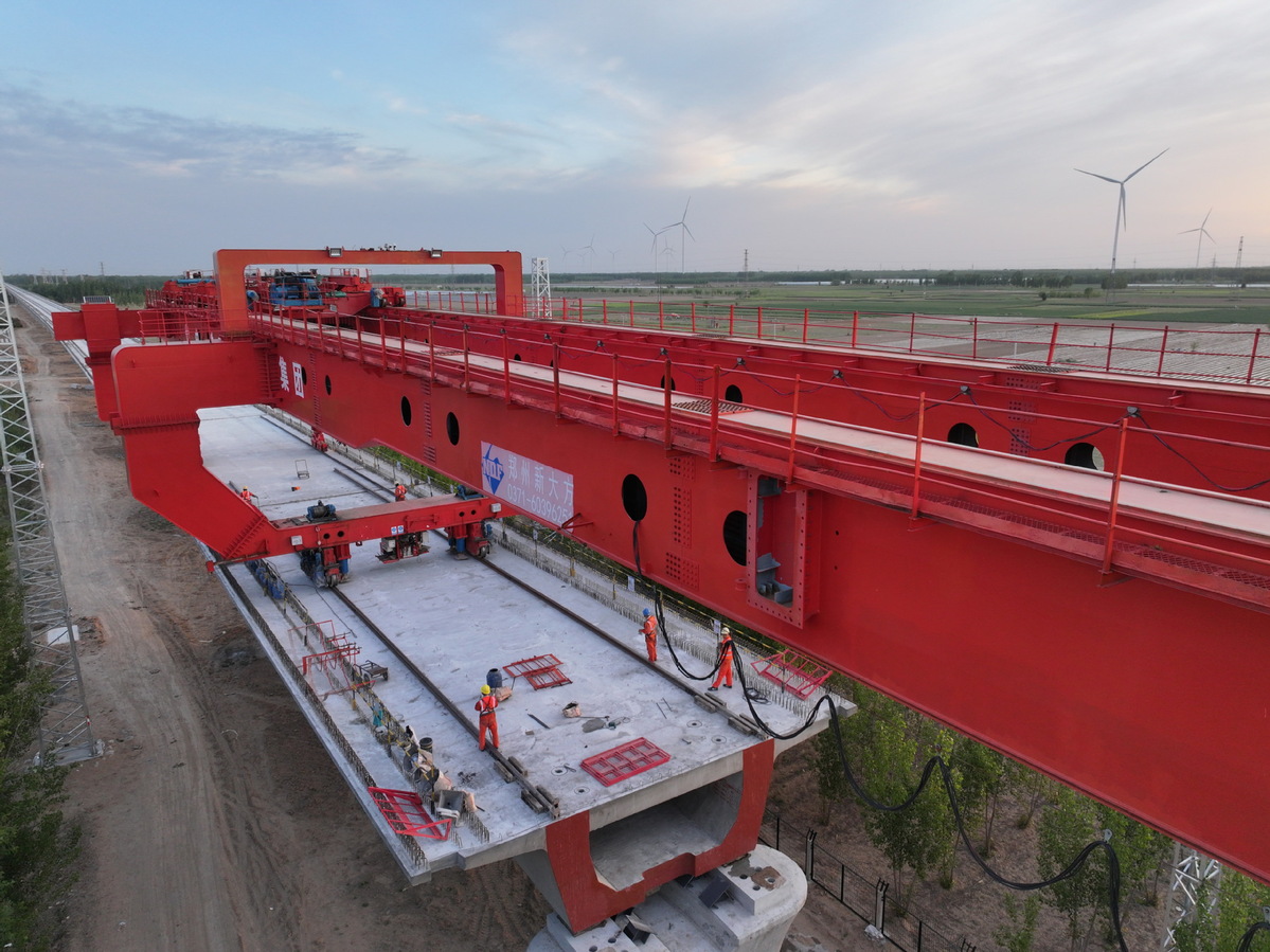 Girder erection work in the Hebei section of Xiong'an-Shangqiu high-speed railway was fully completed on Sunday as the last box girder was erected on a mega bridge. The 552-kilometer-long railway will connect Xiong'an in North China's Hebei province and Shangqiu in Central China's Henan province with a designed speed of 350 kilometers per hour.