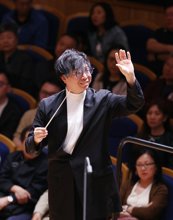 Conductor Huang Jiajun holds a commanding presence. [Photo provided to chinadaily.com.cn]