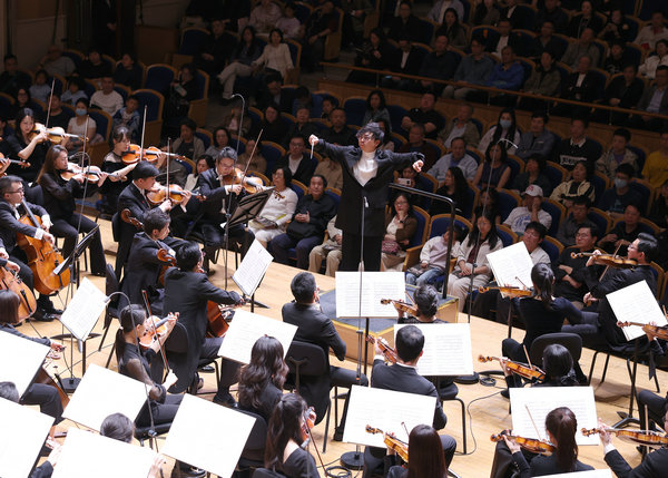 Under the baton of conductor Huang Jiajun, the China National Symphony Orchestra staged a concert in Beijing on Saturday. [Photo provided to chinadaily.com.cn]