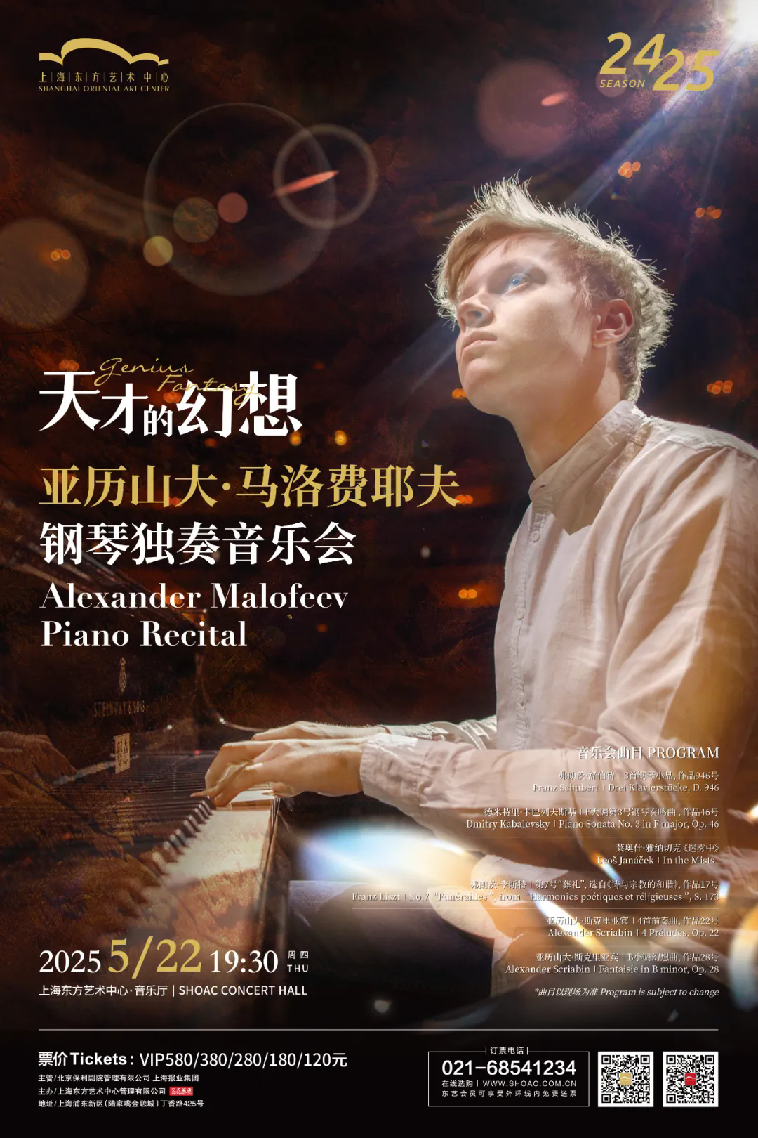 Celebrated pianist Alexander Malofeev will arrive in Shanghai on May 22! Experience his dazzling technique and deep Russian musical heritage as he brings to life Romantic classics and 20th century Russian masterpieces at the Shanghai Oriental Art Center. Don’t miss this magical night of virtuosic brilliance.