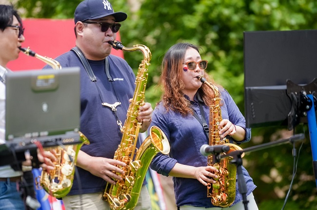 The event started with nearly 20 square groups, each in traditional clothing, creating a vibrant spectacle. The flowing Chinese qipaomoved gracefully alongside the tartan shawls of the Scottish bagpipers. The golden embroidery of the Indian saris shimmered with each movement. The colorful ribbons of the hanboks flowed like liquid colors, adding to the overall beauty.