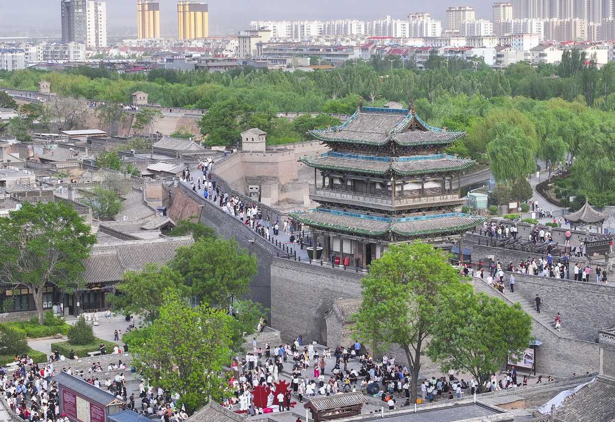 Tourists enjoy their holiday at Pingyao Ancient City in Jinzhong, North China's Shanxi province, on May 2, 2025. [Photo by Liang Shengren/For chinadaily.com.cn]