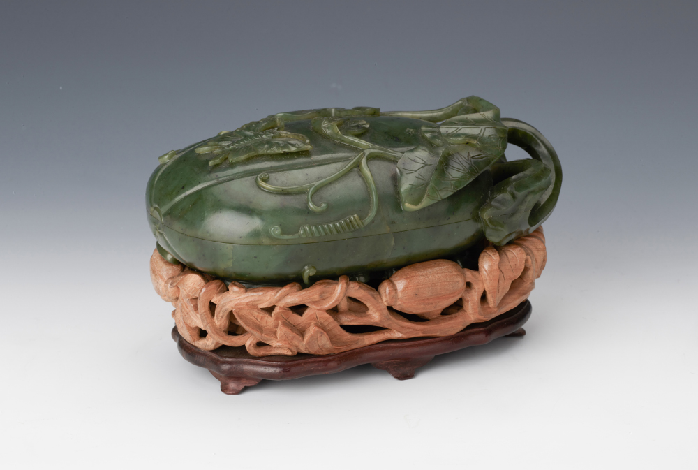 Summer is here and nothing says summer like sweet, juicy melons. Take a closer look at this exquisite melon-shaped box, carved from green jade during the Qing Dynasty (1644-1911). Its surface is entwined with curling melon vines, topped with a butterfly in flight.