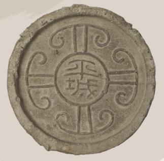 Tile end with two Chinese characters of 平城 (ping cheng), Han Dynasty (206 BC-AD 220), from the collection of Datong Museum [Photo/Tianjin Museum official WeChat account]