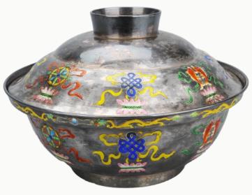 Silver bowl with a lid and enamel motifs of eight Buddhist treasures, Republic of China (1912-49), from the collection of Sichuan Museum [Photo/Sichuan Museum official WeChat account]