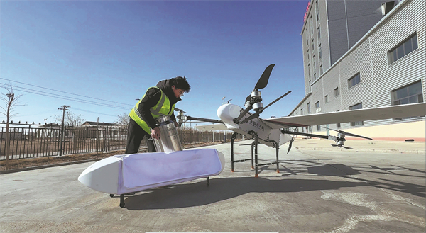 A drone transports camel milk in the Inner Mongolia autonomous region in March. CHINA DAILY