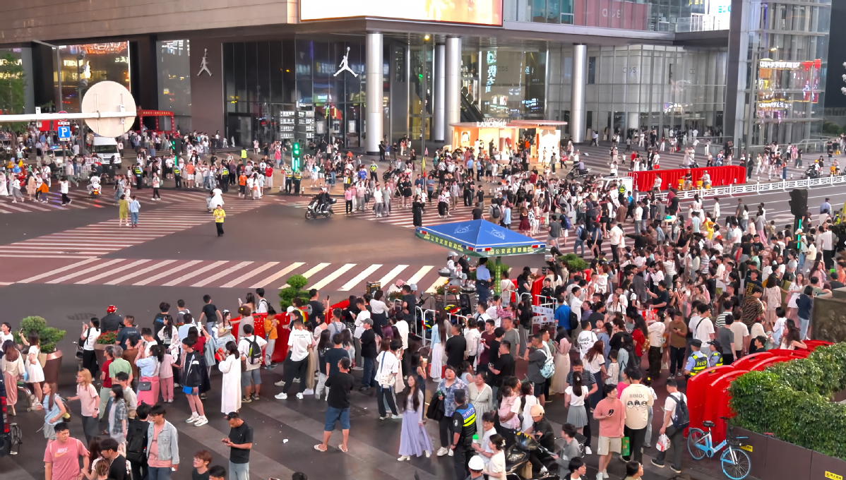 Against the backdrop of the Xiangjiang River's shimmering skyline, the Wuyi business center thrived well past midnight, with night markets, bars, and pedestrian zones pulsing with life. This spring-summer transition period became a joyous celebration of Changsha's urban vitality, leaving visitors enchanted by its round-the-clock allure.