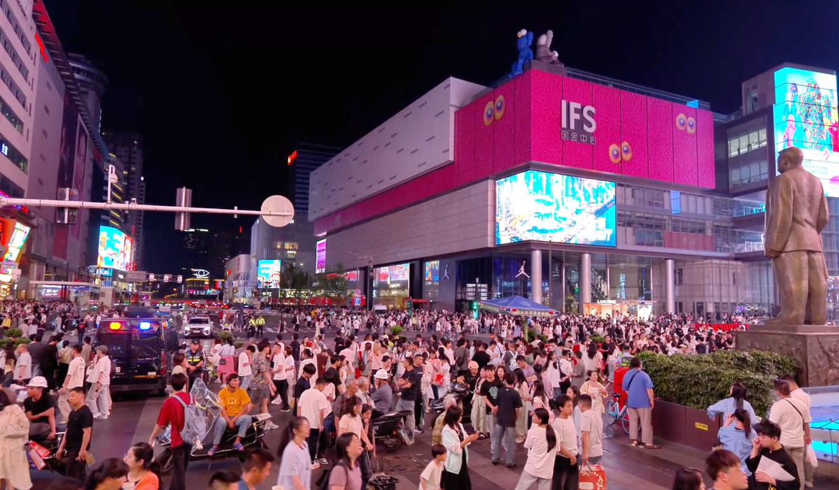 The Wuyi business center in Changsha, Hunan province, comes alive as tourists take advantage of the May Day holiday. [Photo provided to chinadaily.com.cn]