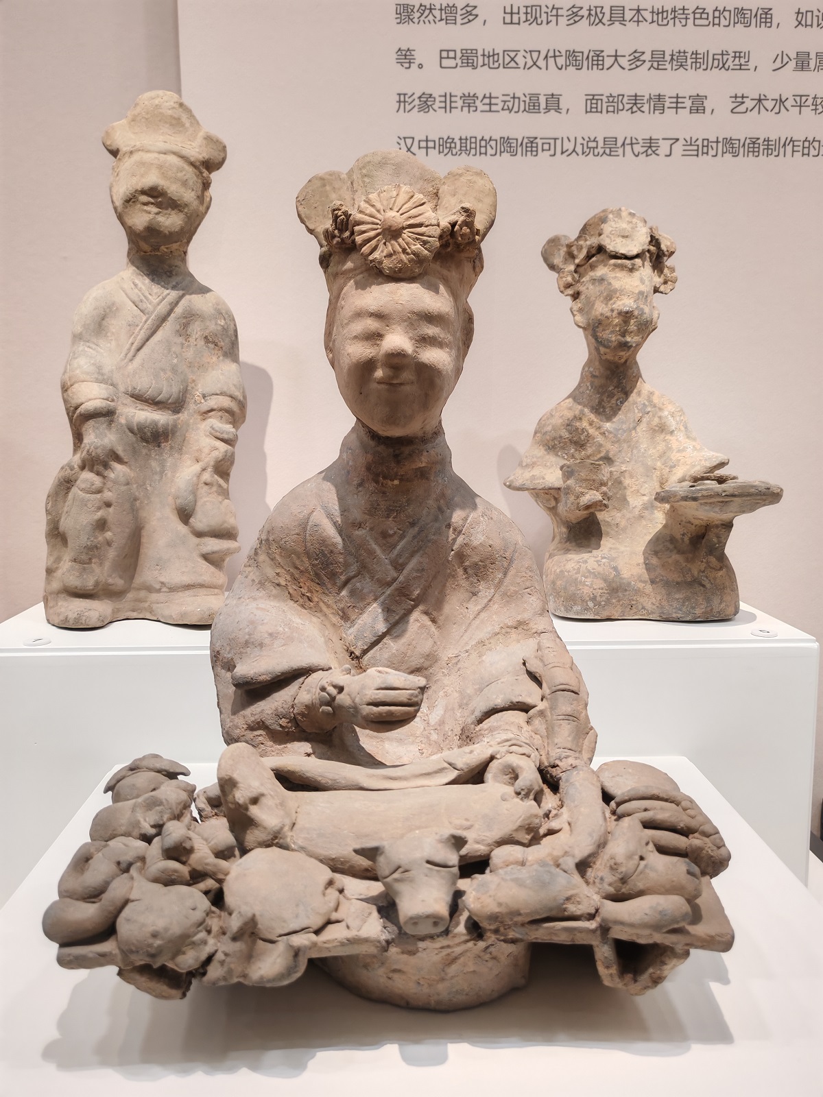 Han Dynasty pottery figurines with smiles on display at the Chongqing China Three Gorges Museum [Photo/provided to chinaservicesinfo.com]
