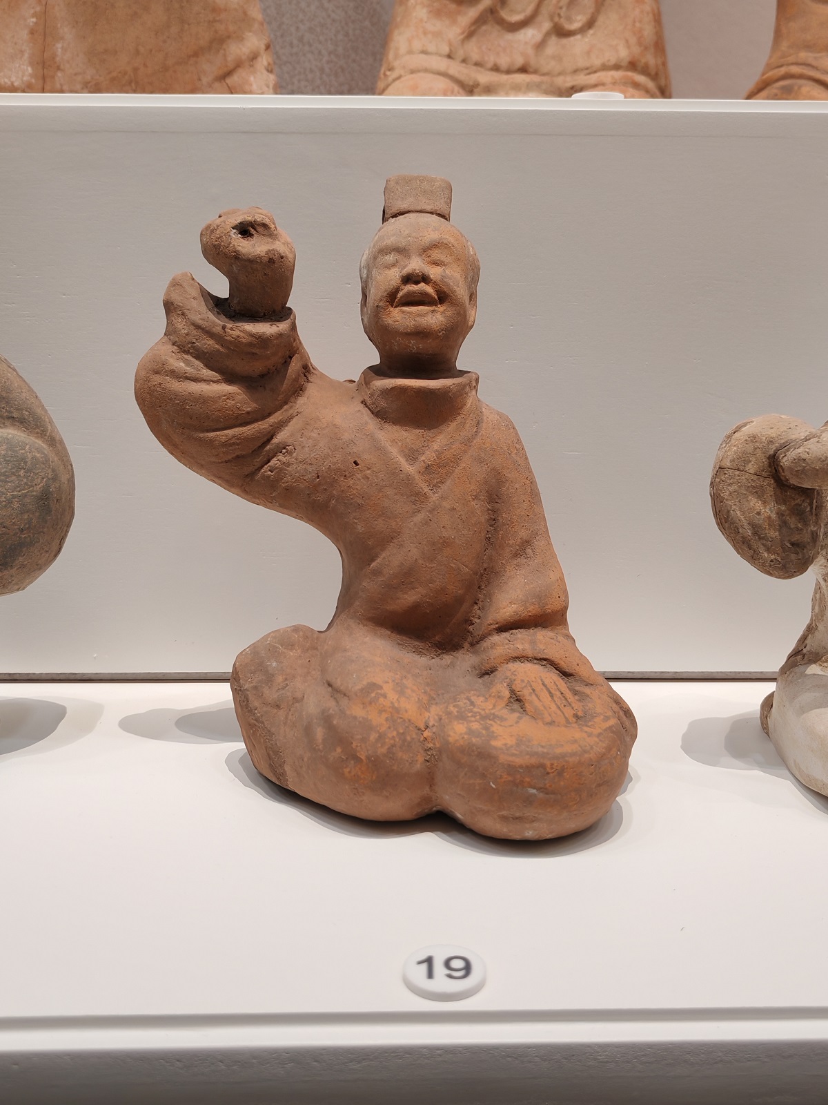 A Han Dynasty pottery figurine with a smile on display at the Chongqing China Three Gorges Museum [Photo/provided to chinaservicesinfo.com]