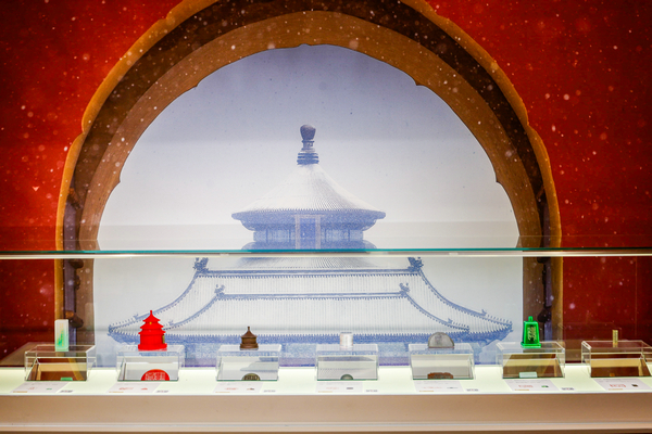 As visitors step into the exhibition hall, they are greeted with a 1:1,000 model of the Beijing Central Axis, with 15 celebrated heritage sites represented, such as the Bell Tower, the Forbidden City and the Temple of Heaven.