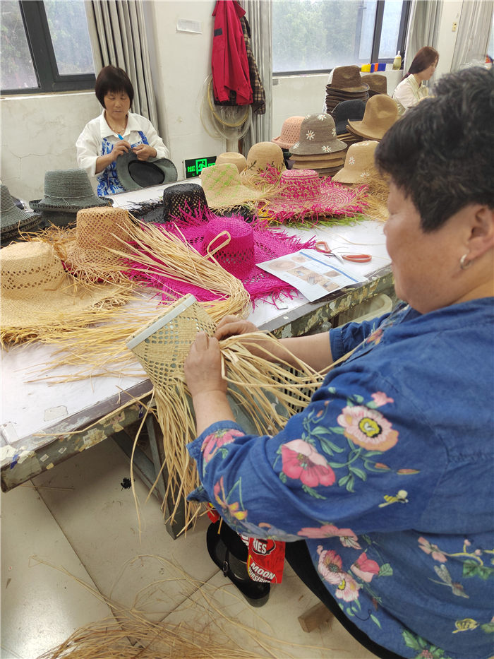 Rural women work in the intangible cultural heritage workshop. [Photo by Bi Nan/chinadaily.com.cn]