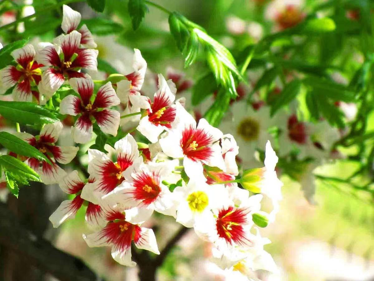 The flowers are densely packed at the shiny-leaved yellowhorn tree seed base of the Qilian Mountain Water Resource Conservation Forest Research Institute.