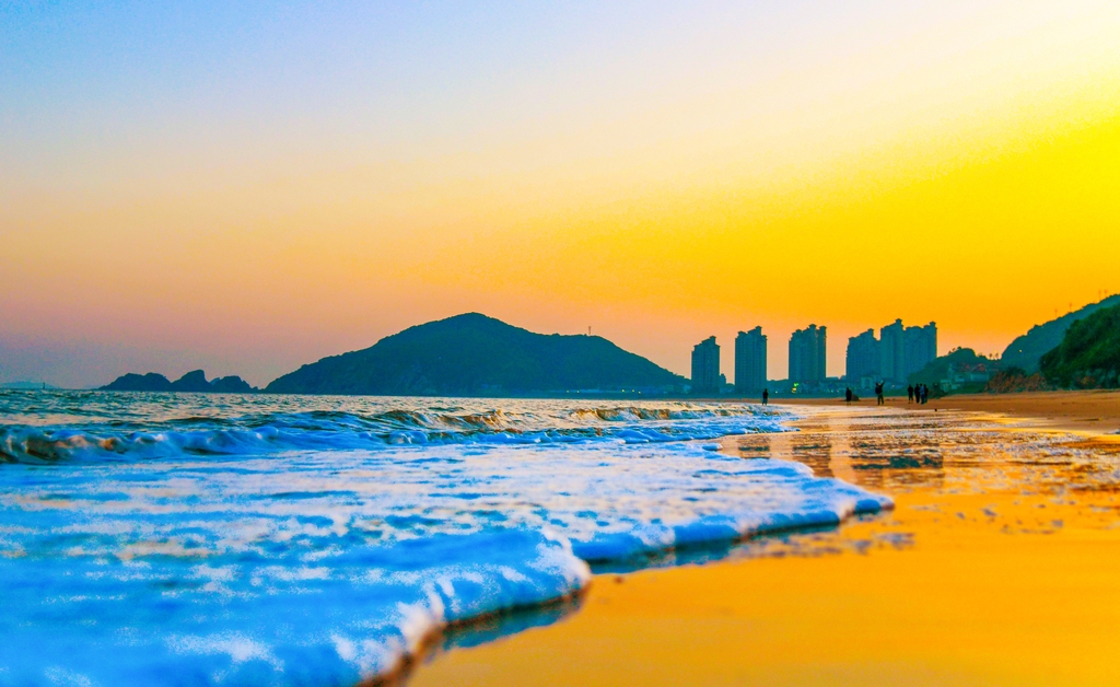 As dusk recently fell over the coastline of Shengsi county in Zhoushan, East China’s Zhejiang province, the afterglow of the setting sun bathed the shore in warm hues. The shimmering sea, touched by the fading light and gentle sea breeze, formed a breathtaking seascape.