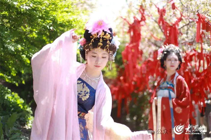 An eye-catching hanfu show kicks off on the magnificent Taishan Mountain in Tai'an on May 11. [Photo/Dazhong News]
