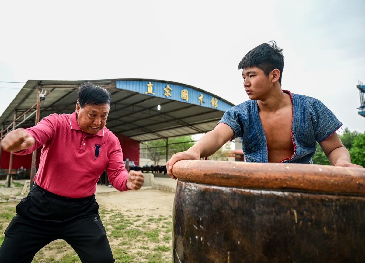 In a rural courtyard at Goutou village, Baoding, North China's Hebei province, 69-year-old Bai Hejiang, known as "Wrestling Grandpa," has spent 12 years teaching Chinese-style wrestling to over 1,000 local children for free.