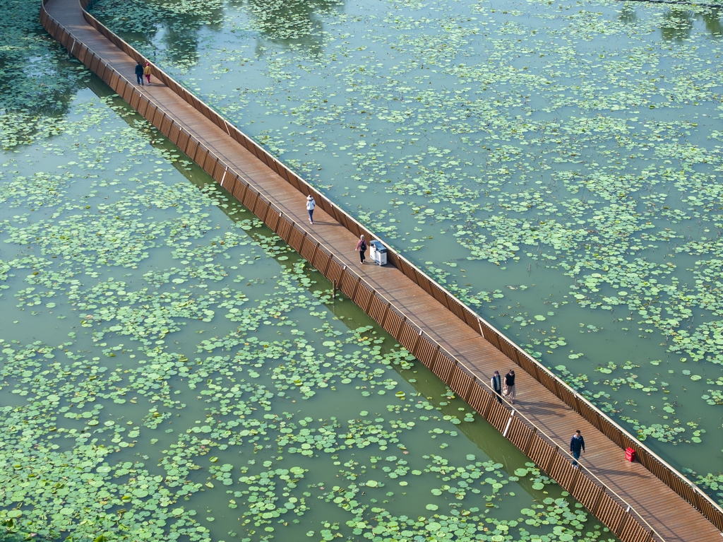 On China Tourism Day this Monday, Xuanwu Lake Park in Nanjing, Jiangsu province, was filled with rippling green waters and unfurled lotus leaves, attracting residents to relax, sightsee, and immerse themselves in the beauty of nature.