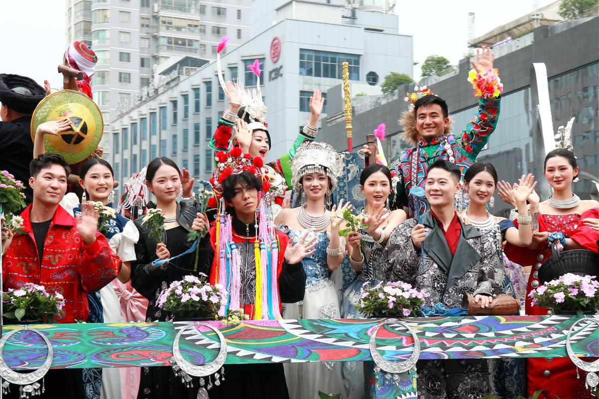 Performers from various ethnic groups participate in a parade on Sunday in Guiyang, Guizhou province. [Photo by Luo Siyang/chinadaily.com.cn]