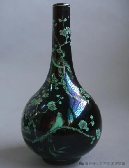 Black-glazed vase with green bird and flower motifs, Qing Dynasty [Photo/Beijing Art Museum official WeChat account]