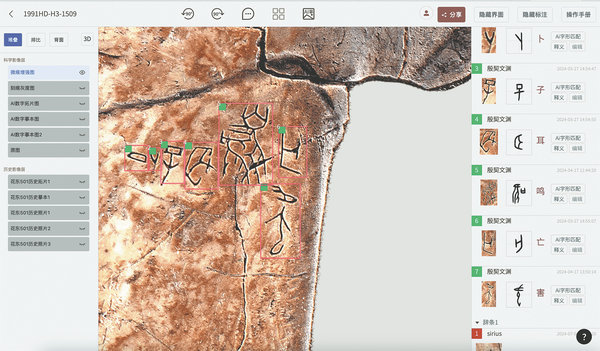 In 2019, the team launched the online platform Yinqi Wenyuan, which integrates databases of oracle bone glyphs — including their explanations, pronunciations, variations and related research — along with image collections of oracle bones, such as rubbings, facsimiles and photographs, as well as literature in the field.