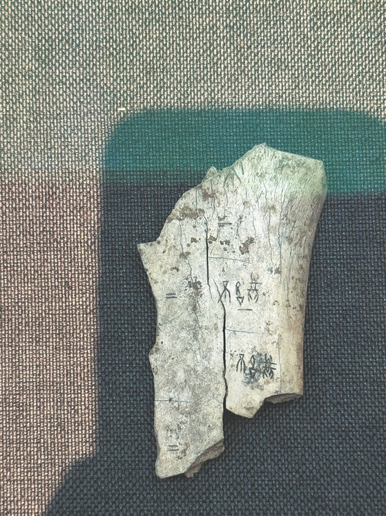 Oracle bones inscribed with the earliest known Chinese characters that are unearthed from the Yinxu Ruins of Anyang and housed at the Chinese Archaeological Museum in Beijing. [Photo by Fang Aiqing/China Daily]