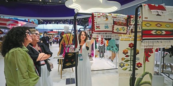 Visitors admire traditional handcrafted textiles from Central and Eastern Europe at the Charming CEEC section, a new feature of the China-CEEC Expo & International Consumer Goods Fair in Ningbo, Zhejiang province. [Photo/Tide News]