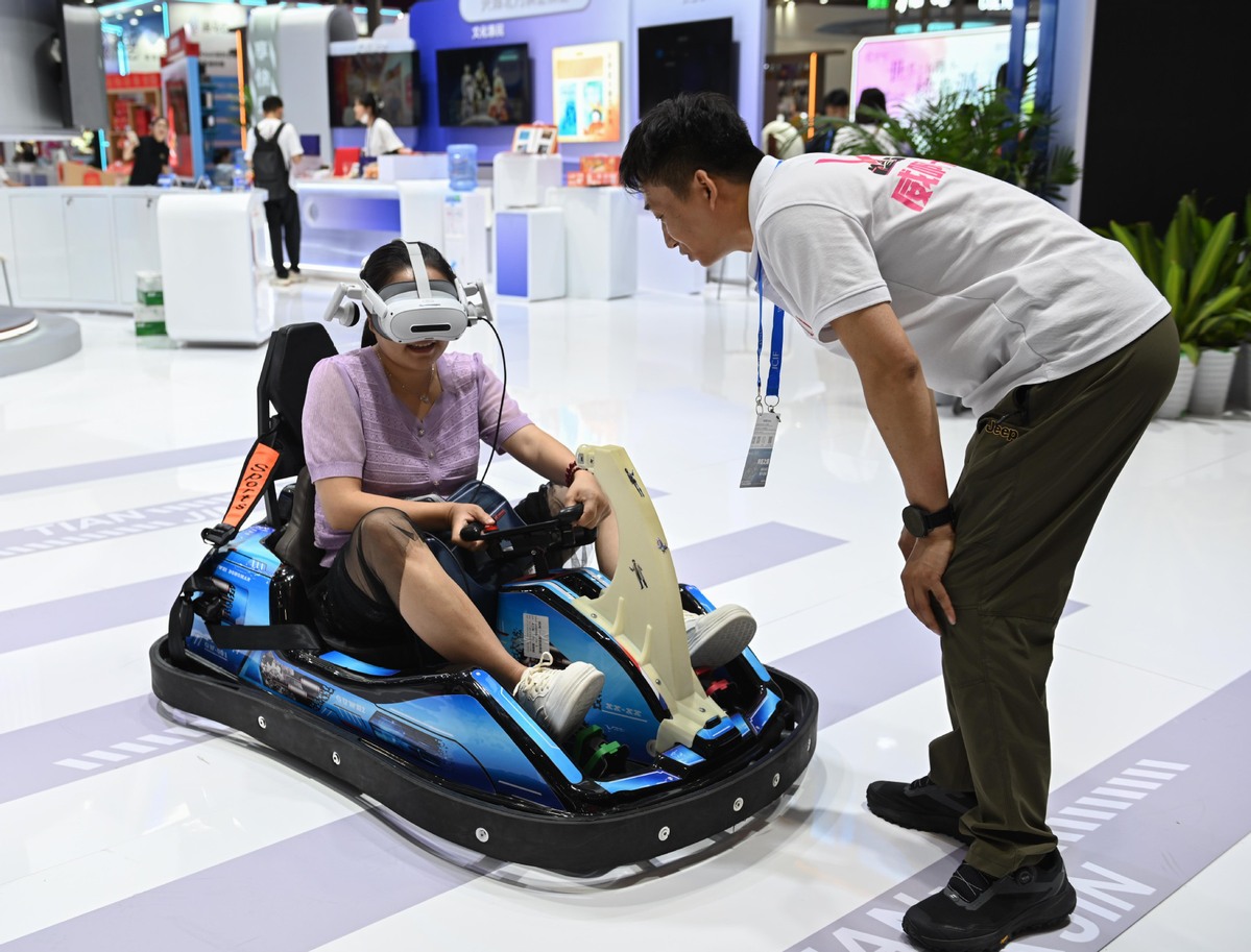 A visitor experiences a go-kart at the 21st China (Shenzhen) International Cultural Industries Fair in Shenzhen, South China's Guangdong province, May 22, 2025. [Photo/Xinhua]