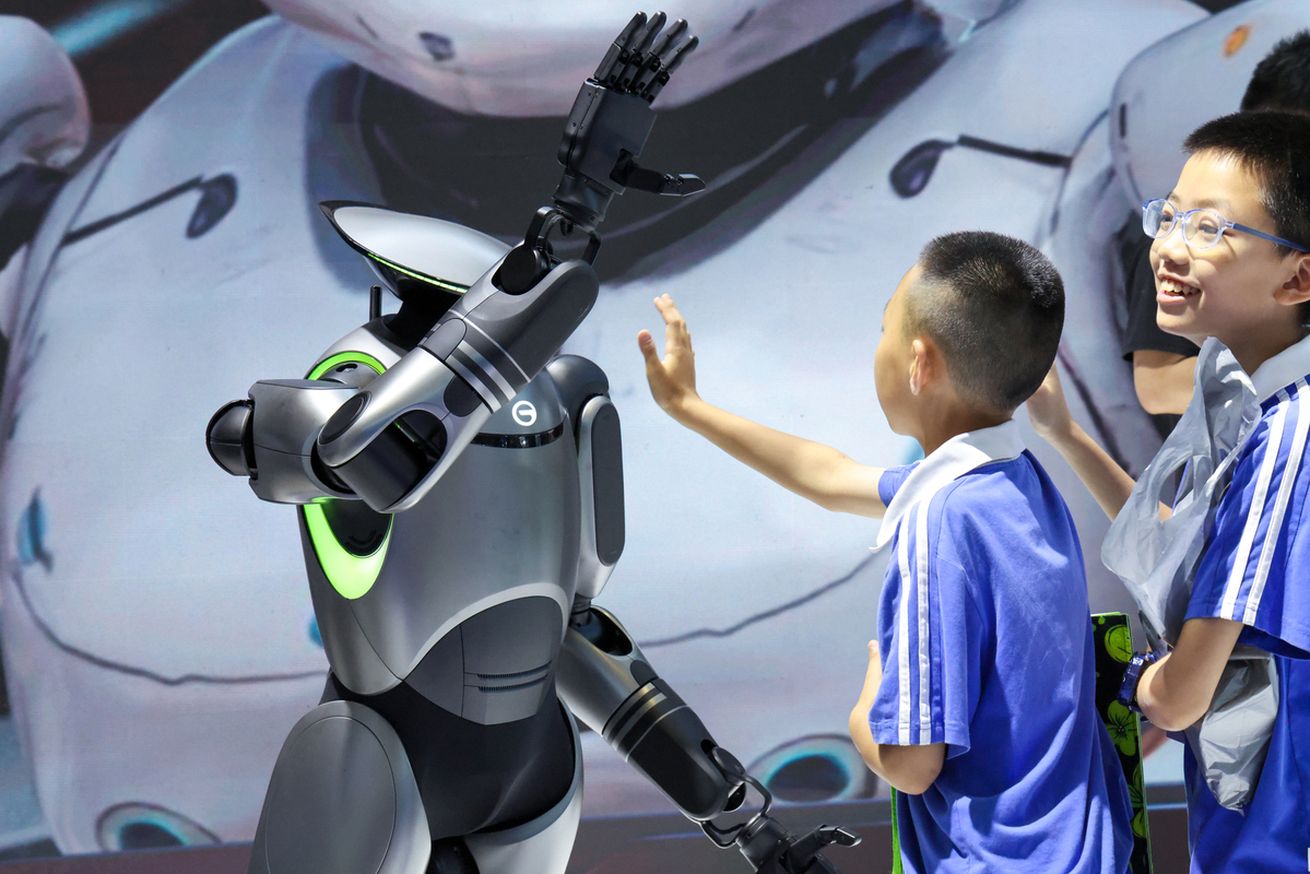 Children interact with a robot at the 21st China (Shenzhen) International Cultural Industries Fair in Shenzhen, South China's Guangdong province, May 22, 2025. [Photo/Xinhua]