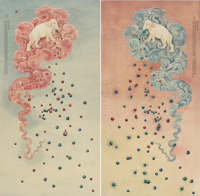 By incorporating Buddhist scriptures, statues, lotus flowers and other elements associated with Buddhism, Zheng immerses her audience in a mood of meditation for one to pause, and reflect on the vigor of all lives in the world. Her works echo the belief of Zen Buddhism that seeing the overall of the world in a flower, or a leaf. The exhibition is held at Yungang Art Gallery, of Yungang Institute in Datong, until Aug 28.