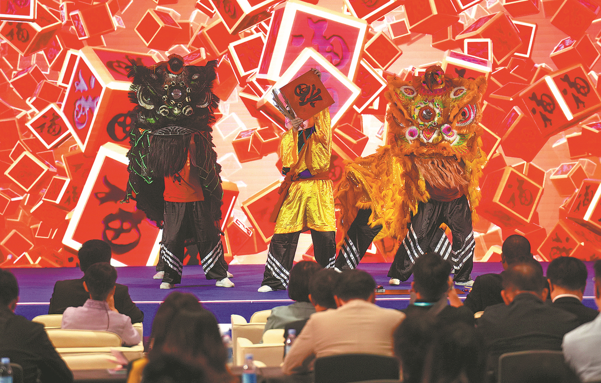 A lion dance performance is put on during the Forum on Building Cultural Strength and Promoting Digital Intelligence of the Greater Bay Area at the Shenzhen World Exhibition & Convention Center in Shenzhen, Guangdong province, on Tuesday. [Photo by Adam Lam/China Daily]