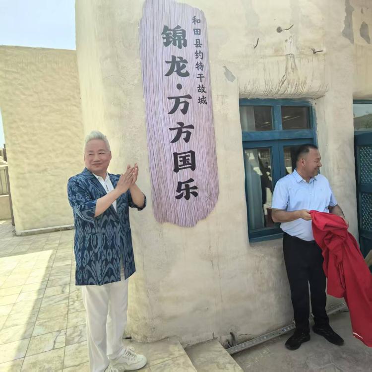 Fang Jinlong (left) unveils a music studio in Hotan. [Photo provided to chinadaily.com.cn]