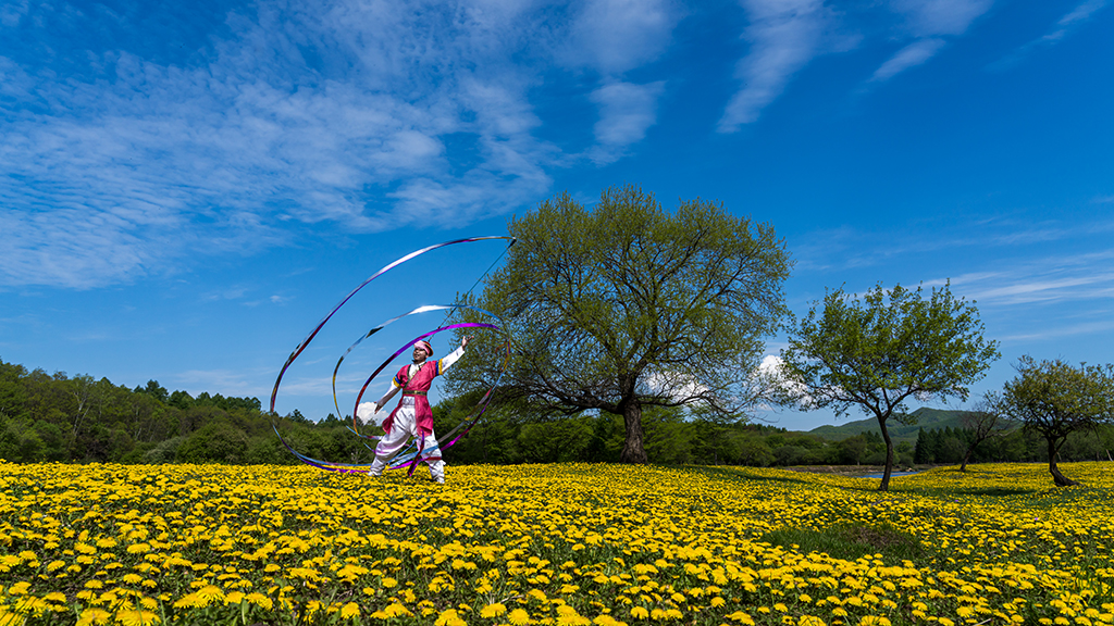 In midsummer, wild dandelions bloom in brilliant splendor across Xinhe township, Antu county, Jilin province. A golden sea of flowers stretches out, blending harmoniously with the surrounding mountains and waters, creating a picturesque scene that draws tourists and photography enthusiasts.