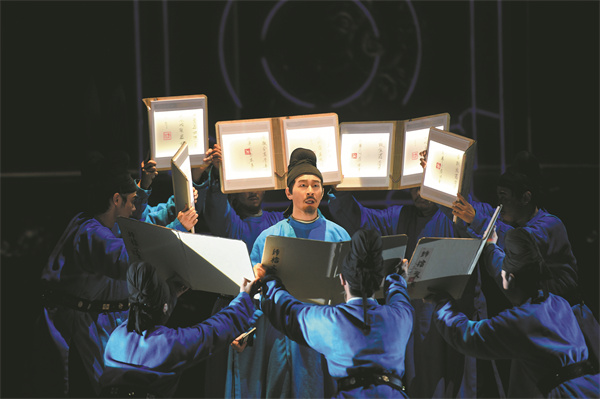 A scene from The Litchi Road, a play adapted from Ma Boyong's popular eponymous novel. Against the backdrop of actual history, the play revolves around a fictional Tang Dynasty (618-907) official Li Shande, and sheds light on the era's society and officialdom. [Photo provided to China Daily]