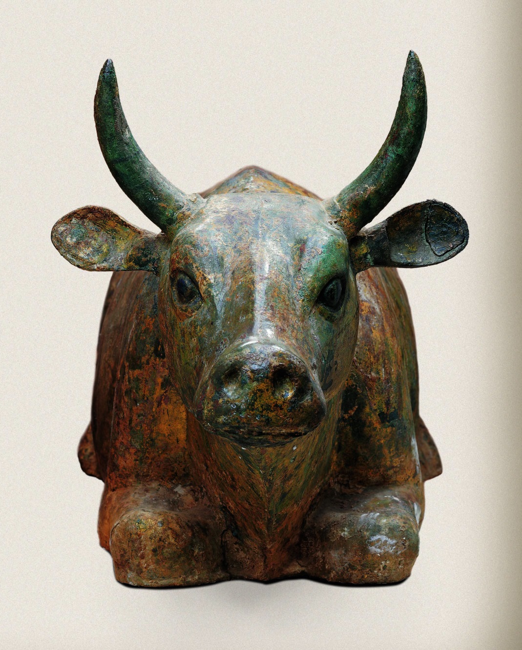 Gilded bronze sculpture of a kneeling ox discovered in Ningxia