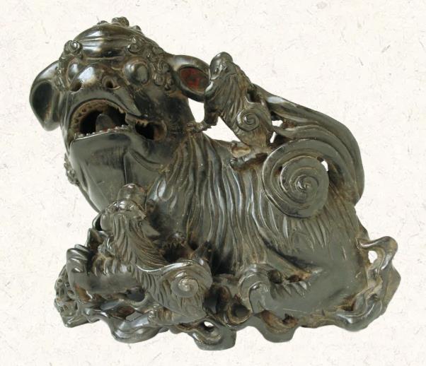 Obsidian carved guardian lion and cub, Republic of China (1912-49) [Photo/Hunan Museum official WeChat account]