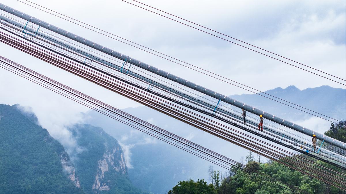 The behemoth is a centerpiece of the expressway that will link Anshun and Panzhou. Suspended 560 meters above the water below, roughly the height of a 200-story building, the deck is designed for vehicles running at up to 100 kilometers per hour.