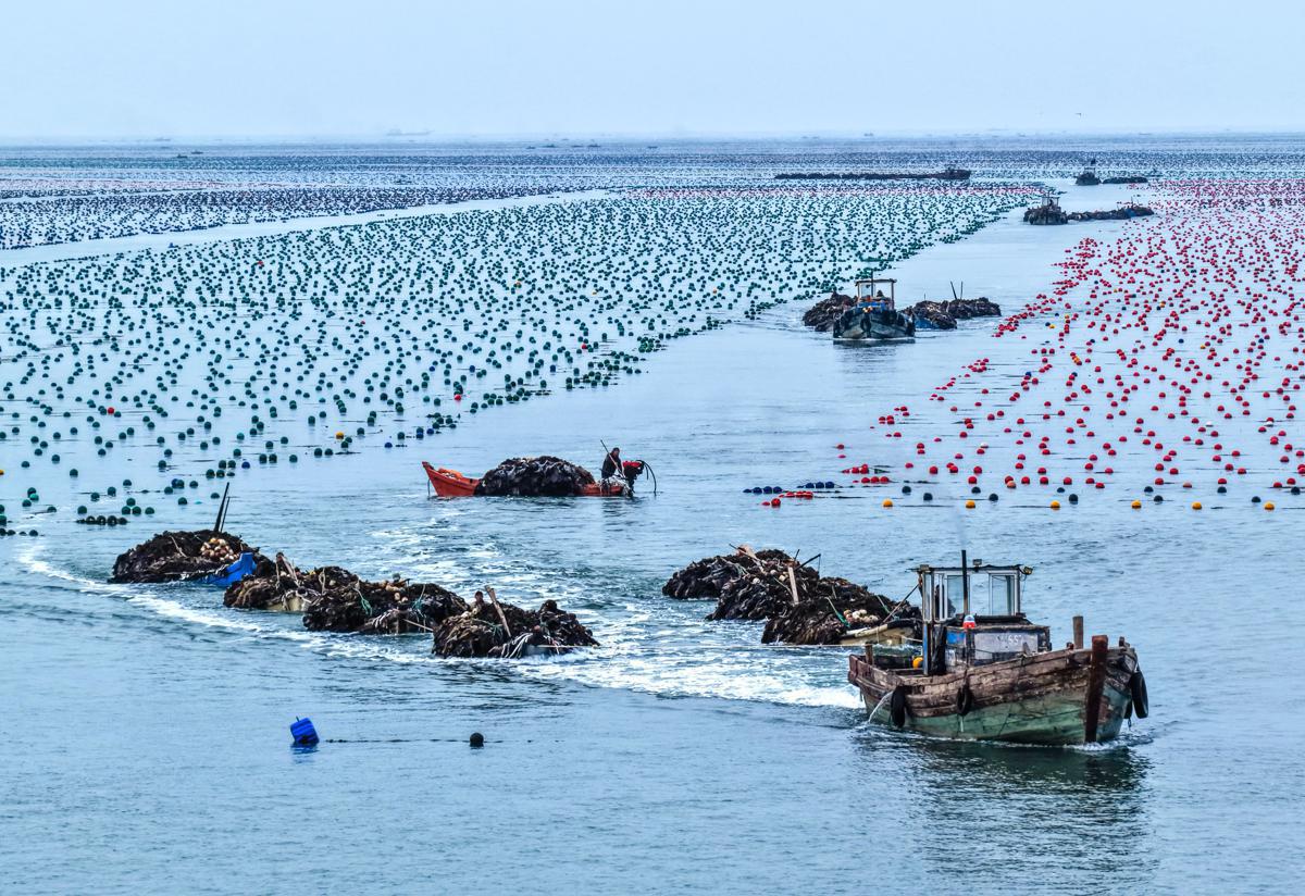 Fishermen harvest seaweed from thriving aquaculture zones on Friday in Ailun Bay, Rongcheng, Shandong province. [Photo by Li Xinjun/For chinadaily.com.cn]