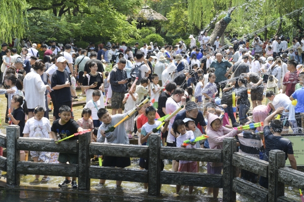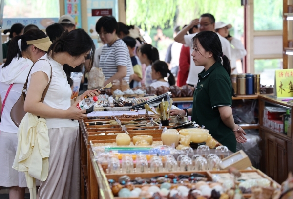 Visitors gather to enjoy spring scenery at Baotu Spring Park in Jinan on June 8. [Photo/IC]Visitors browse cultural products at a stall in Baotu Spring Park on June 8. [Photo/IC]Tourists cool off with water play at Wulongtan Park in Jinan. [Photo/IC]