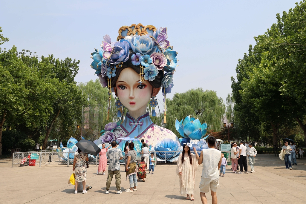 Visitors take photos in front of a lantern installation at Daming Lake in Shandong province [Photo/IC]